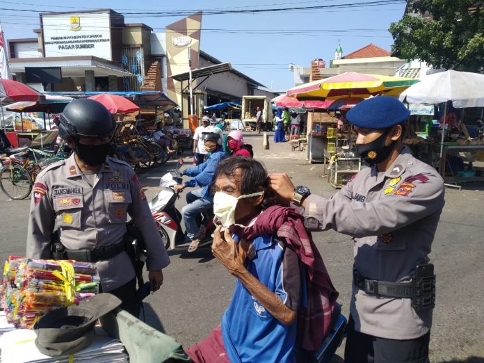 CIREBON – Sebagai upaya ikut membantu serta mendukung program pemerintah dalam upaya memutus mata rantai penyebaran Coovid-19 yang saat ini gencar dilakukan oleh pemerintah Indonesia, jajaran Kompi 1 Batalyon C Pelopor Sat Brimob Polda Jabar bagikan masker gratis kepada warga kurang mampu di Kabupaten Cirebon.