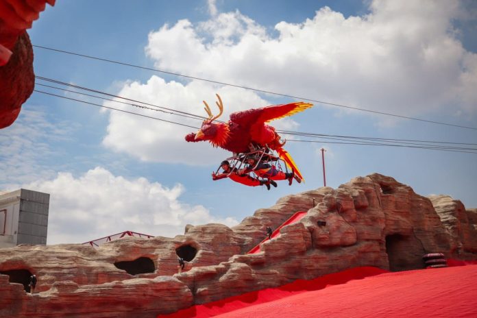 Narasi ini dihadirkan secara kuat melalui desain wahana, ornamen burung Raktavara, permainan cahaya, hingga ikon Zeppelin yang menjadi ciri khas Skyward Project.