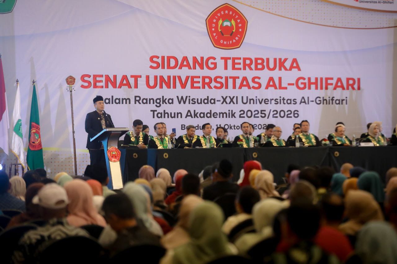 BERITABANDUNG.id – Sebanyak 462 wisudawan dan wisudawati Universitas Al-Ghifari Bandung resmi dikukuhkan dalam Wisuda ke-21 yang berlangsung di The Trans Luxury Hotel, Jalan Gatot Subroto Kota Bandung, Sabtu, 11 Oktober 2025.
